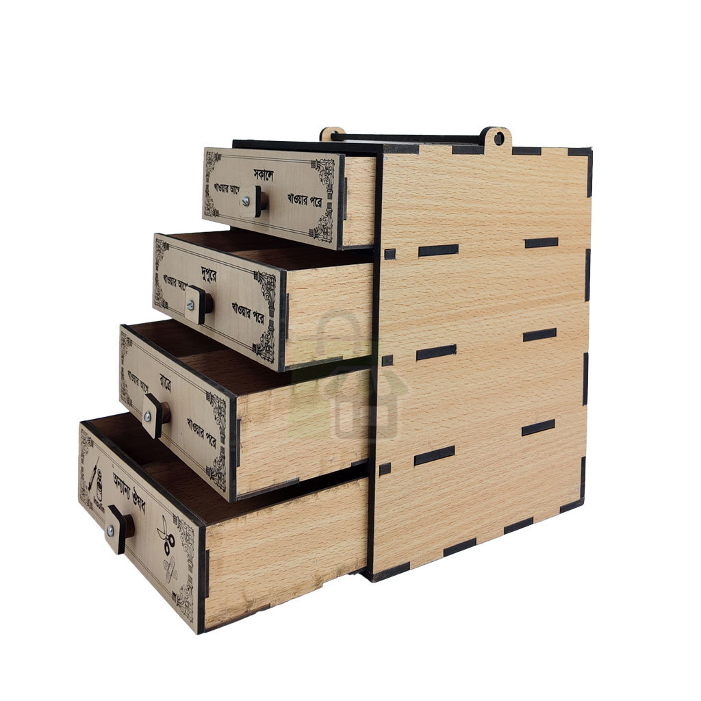 এর কমপ্যাক্ট ডিজাইন সহজেই যেকোনো ঘরে, টেবিলে বা কাবিনেটে স্থান পায়। আপনি চাইলে ঔষধ ছাড়াও টয়লেট্রিজ, গয়না, পিন, পেন—ছোটখাটো সবকিছু সংরক্ষণ করতে পারেন।